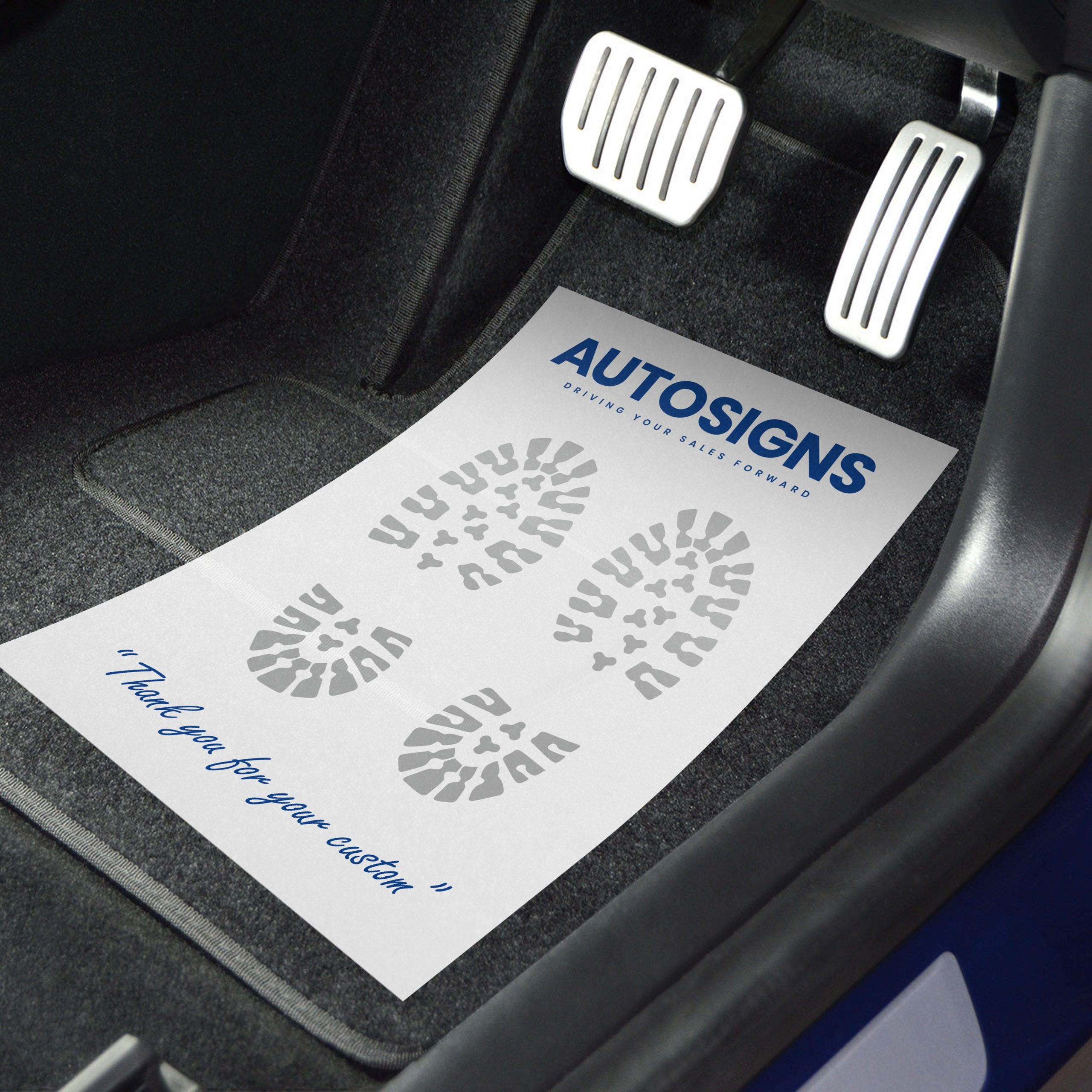 Protect interiors while promoting your brand with our custom paper car floor mats. Printed A2 footwell mats let you display logos, offers, and messages exactly how you want. Ideal for dealerships, garages, and rental companies—enhancing customer experience and reinforcing your brand .