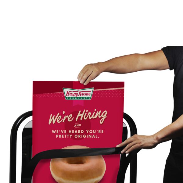 We print in full colour as standard to both sides of the panel, so any design is possible. The Eco Swinger features a soft round base for pedestrian safety, and the patented D-Flex panel hangers allow the panels to be fitted with ease – no tools required.