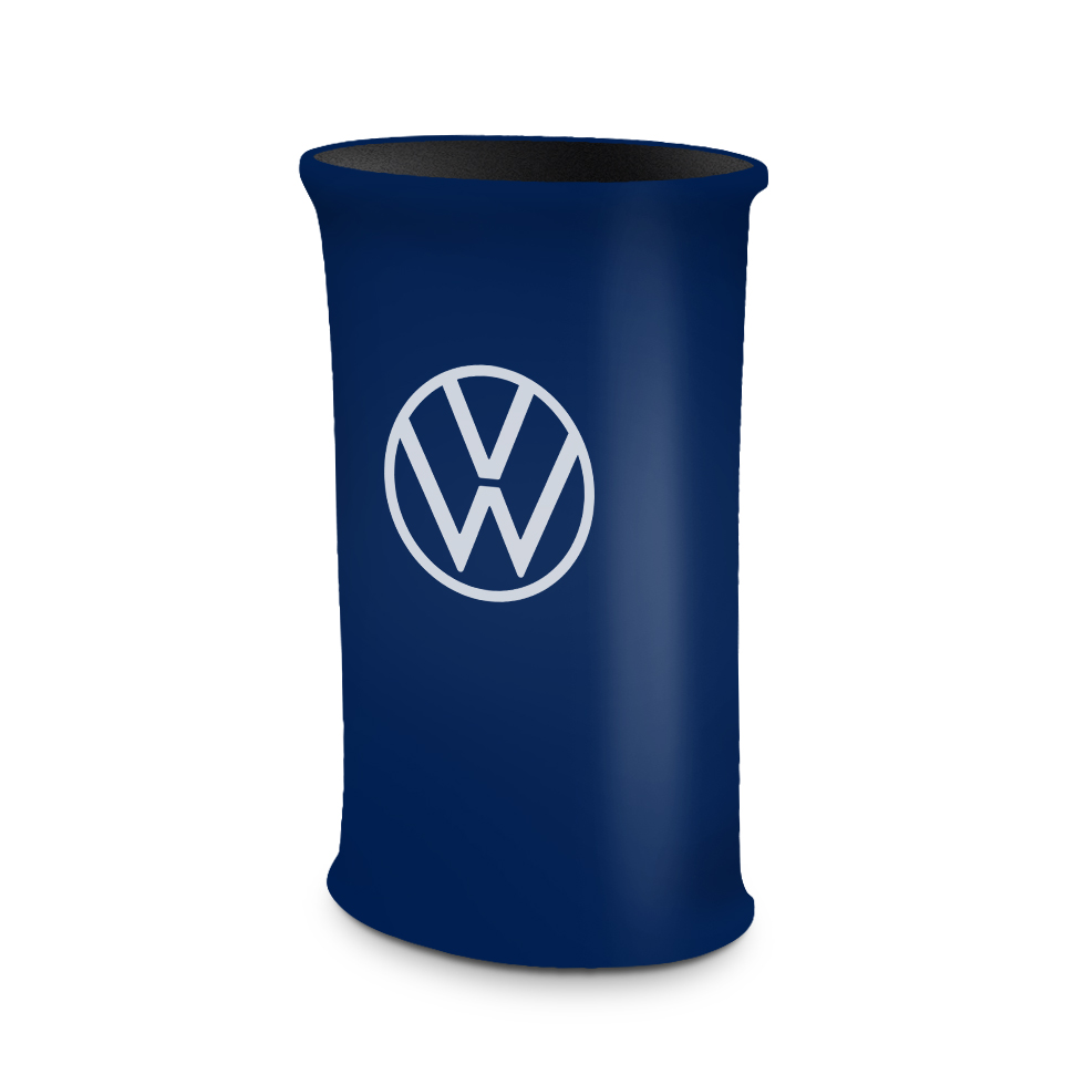 We print onto 210gsm polyester, which, thanks to its stretch properties and silicone edge, ensures a creaseless and modern finish. The base and top of the counter are supported by four poles, making it easy to assemble and lightweight.